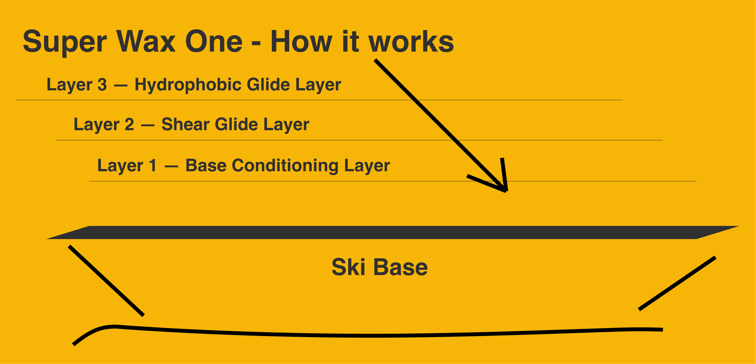 The first layer of Super Wax One works to recondition and stabilize the base surface. This layer integrates with the microscopic structure of the ski base and restores lubrication to the surface, reducing microscopic drag while helping the ski maintain a consistent glide profile.